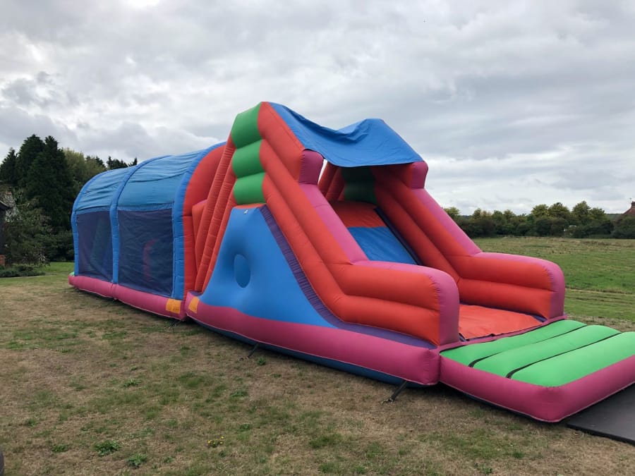 Race through our custom made obstacle courses with many inflatable objects to battle through before climbing the slide to shoot down to claim victory!