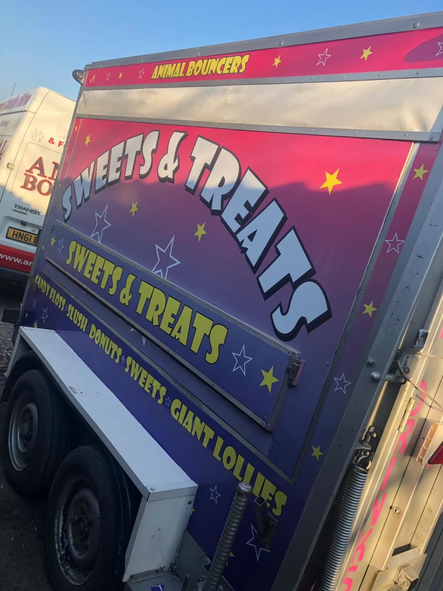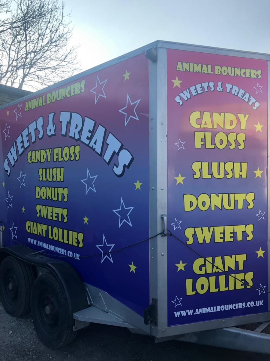 This trailer is ideal for any event, fete or celebration serving family favourites like ice cold slush, candy floss, popcorn, sweets, giant dummies, giant lollies, hot donuts, crepes, hot and cold drinks, waffles and more!