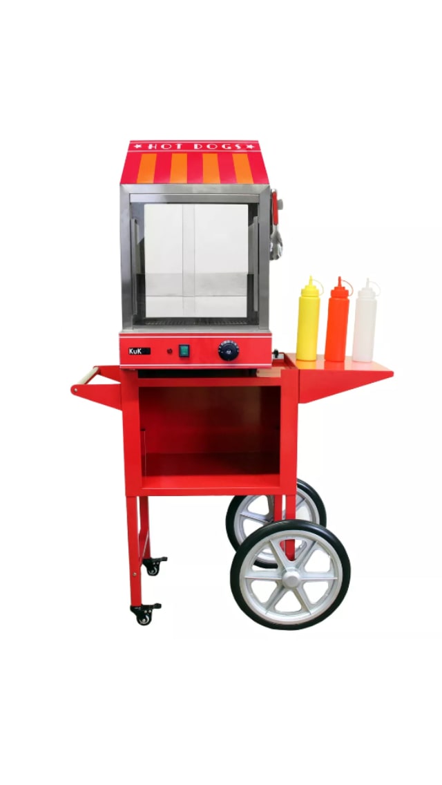 Our hot dog cart can be hired as machine only or with the stand.